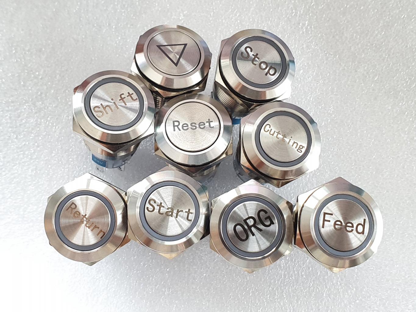 - Khẩn cấp dừng (Emergency Stop): Dừng toàn bộ hoạt động của máy ngay lập tức trong trường hợp khẩn cấp (thường có màu đỏ và kích thước lớn hơn).